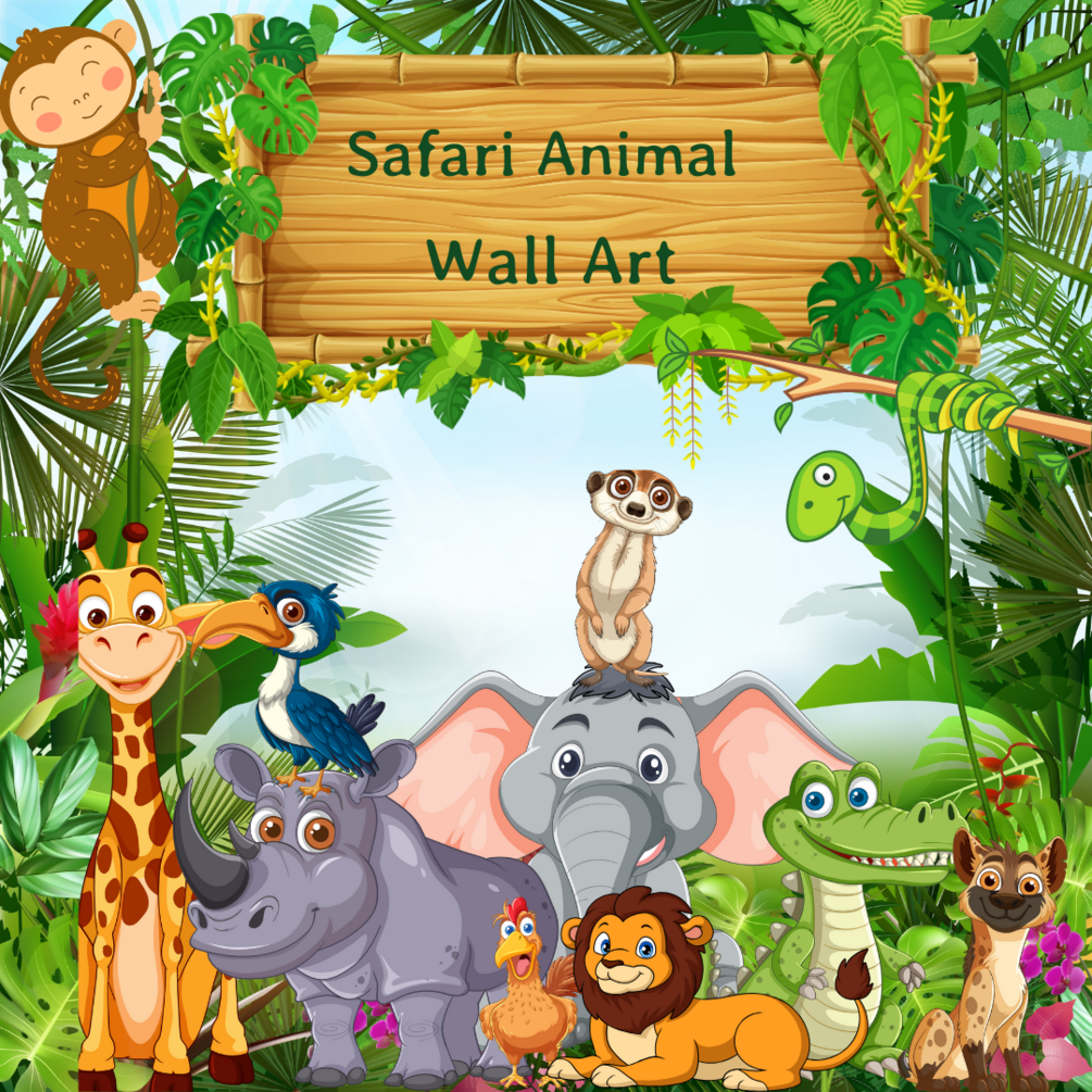 Add a touch of adventure to your space with our Safari Animal Wall Art. Featuring charming illustrations of favorite jungle animals like lions, elephants, and giraffes, these prints are perfect for nurseries, kids' rooms, or any area that needs a playful vibe.