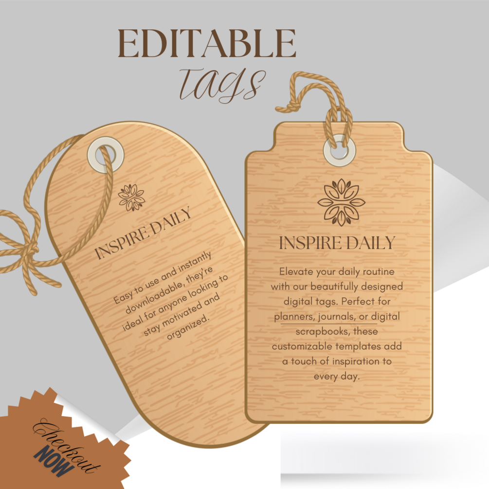 Elevate your daily routine with our beautifully designed digital tags. Perfect for planners, journals, or digital scrapbooks, these customizable templates add a touch of inspiration to every day.